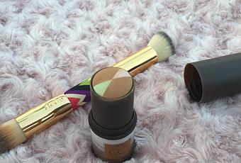 Pur essendo un primer, la stessa Tarte indica che può essere usato anche come un fondo dalla copertura leggera. Il suo stick "a clessidra" permette di applicare in maniera uniforme non solo la base colorata ma anche i due pigmenti correttivi (il lilla per avere maggiore luminosità, il verde per correggere rossori).