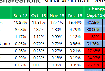 Sharehaolic, utility, applicazione per la condivisione dei contenuti sui diversi social media e social network, ha diffuso i dati raccolti da oltre 200.000 siti web, che raggiungono più di 250 milioni di visitatori unici ogni mese, relativamente all’ultimo trimestre del 2013.