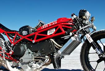 Mark Bjorklund con la sua Ducati S4RS nella classe 1000 A-AG , quella con design libero ma senza l'uso di compressori Turbo ha battuto il record che era in vigore sin dal 1975 facendo segnare un velocità di 166,3 mph (267.6kph).