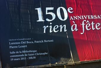 valga la pena di festeggiare l’unità d’Italia il prossimo 17 marzo. La successiva è stata invece prima di ingenua incredulità, poi di fastidio, rabbia, vergogna. Ed è stata causata dalla foto allegata, ben visibile nei suoi 5×3 (circa) sul lato della salita che porta al parcheggio della funivia Aosta-Pila, così da renderla ben evidente anche alle migliaia di turisti che passano di lì, conoscenza del francese permettendo. Le mie sono sensazioni da uomo della strada, non schierato da nessuna parte. Ci sarà chi saprà dare interpretazioni politiche, sociologiche, antropologiche che a me, al momento, non interessano. Mi interessano la sensazione di fastidio provata e l’ipocrisia di chi fa il bello e il cattivo tempo con l’enorme trasferimento di denaro che ci proviene dallo Stato e poi sputa nel piatto in cui mangia, scrivendo a caratteri cubitali sui muri della propria città “Niente da festeggiare”. Che non ci sia niente da festeggiare è chiaro a molti ormai, che non ci sia più nemmeno un briciolo di decenza anche e putroppo.