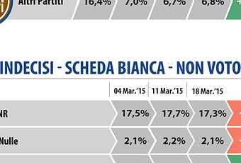 Sondaggio SWG 18 marzo 2016 – PD 33,6% (+1,8%), CDX 31,8%, M5S 22,4%