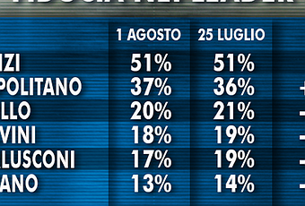 Alleghiamo anche la Fiducia nei Leader oltre alle intenzioni di voto direttamente inserite nei nostri archivi.