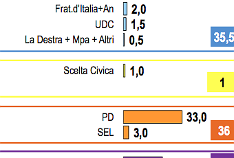 Per nostra volontà inseriamo Scelta Civica nel CSX, tuttavia, come si deduce dalla grafica originale Lorien, essa è conteggiata da sola.