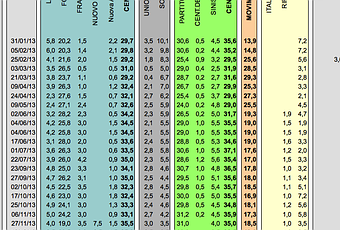Nel CDX Forza Italia guadagna un punto e si porta al 21,5%. In recupero il NCD, al 7%. Calano invece FdI e la Lega Nord.