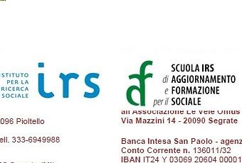 ![]() Sono aperte le iscrizioni ai Corsi di formazione IRS (per ogni corso viene presentata richiesta per ottenere i Crediti formativi o deontologici per Assistenti sociali) Stare nel conflitto: competenze emotive, funzioni negoziali e mediative per le professioni sociali (3a edizione) - sede di Milano, 3 giornate: 13 e 24/11,12/12/2014 – chiusura iscrizioni 5/11 destinato agli operatori sociali, è un intervento formativo in grado di esplorare e connettere gli strumenti della relazione d’aiuto con alcune strategie per riuscire a gestire la rabbia e “stare dentro i conflitti” senza averne paura. Il responsabile del corso è Francesco Di Ciò. Per il programma completo, i docenti, i costi, le modalità di iscrizione CLICCA QUI Approfondimento sugli strumenti per la progettazione europea - sede di Milano, 3 giornate: 17/11, 1 e 15/12/2014 – chiusura iscrizioni 7/11 destinato agli operatori e responsabili pubblici e del terzo settore che operano o intendono operare nella progettazione europea, il corso si propone di approfondire contenuti e strumenti chiave (il concetto di innovazione al centro della progettazione, social investment package; come partecipare ad un bando europeo; la ricerca delle opportunità di finanziamento e la costruzione della partnership; l’elaborazione del progetto secondo il PCM Project Cycle Management; gli strumenti per il monitoraggio, la valutazione, la rendicontazione). La responsabile del corso è Carla Dessi. Per il programma completo, i docenti, i costi, le modalità di iscrizione CLICCA QUI Etica e responsabilità (2a edizione) - sede di Roma, 1 giornata, 24/11/2014 – chiusura iscrizioni 14/11 destinato agli assistenti sociali, l’incontro (che fornisce 5 crediti deontologici) vuole offrire un momento di riflessione su come si declinano nella pratica professionale i principi del codice deontologico. In questo momento storico in cui le condizioni economiche, organizzative e sociali sono caratterizzate da fluidità e incertezza ci sembra importante strutturare e offrire uno spazio formativo che abbia un ancoraggio all’esperienza e promuova rielaborazione di capacità, conoscenze e atteggiamenti professionali, verso l’utenza, a partire da quelli che sono i principi che guidano la professione. Il corso è tenuto da Ariela Casartelli. Per il programma completo, i costi, le modalità di iscrizioneCLICCA QUI Etica, deontologia e responsabilità (2a edizione) - sede di Milano, 2 giornate, 27/11 e 3/12/2014 – chiusura iscrizioni 19/11 destinato agli assistenti sociali, l’incontro (che fornisce 5 crediti deontologici e 7 formativi) consisterà in un laboratorio sull’etica, una proposta di lavoro per dare senso e significato a dubbi, dilemmi e conflitti che attraversano il quotidiano agire professionale. A partire dalle esperienze concrete dei partecipanti, saranno approfonditi a livello teorico e pratico il ruolo professionale dell’assistente sociale e la declinazione nella pratica dei concetti di responsabilità verso il proprio ruolo, l’utenza e l’organizzazione. La responsabile del corso è Ariela Casartelli. Per il programma completo, i costi, le modalità di iscrizioneCLICCA QUI SONO POSSIBILI SCONTI PER ISCRIZIONI MULTIPLE. I CORSI POSSONO ESSERE ORGANIZZATI PRESSO LA SEDE DEGLI ENTI CONCORDANDO TEMPI, COSTI E MODALITA’. I corsi si svolgono: a MILANO presso la sede IRS di via XX Settembre 24 (MM Conciliazione) dalle 10 alle 17; a ROMA presso la sede IRS di via Etruria 47 (Metro A Re di Roma) dalle 10 alle 17 |