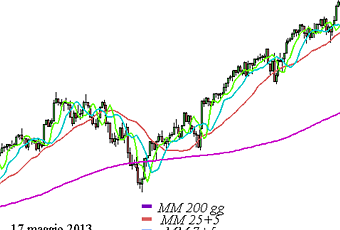 Tutti e tre i trend sono positivi e peraltro posizionati nella sequenza ideale (medie mobili brevi superiori a quelle lunghe) per un’impostazione rialzista.