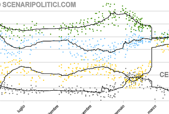 - CDX vs CSX, CDX vs M5S, CSX vs M5S (tutti i sondaggi degli ultimi 12 mesi+ media mobile a 20 sondaggi + differenziale storico tra le coalizioni);