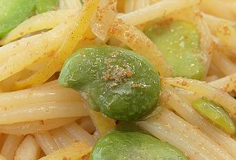 SPAGHETTI ALLA BOTTARGA E FAVE CON PROFUMO DI LIMONE