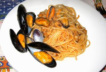 Preparazione: - Per prima cosa occuparsi del pesce mettendo le cozze in una bacinella con acqua fresca corrente; - Lavare le cozze e togliere le incrostazioni e la barbetta; - Versare un po' di olio in una padella; - Aggiungere uno spicchio di aglio, il vino bianco e le cozze lavate e pulite; - A questo punto aspettare che le cozze si aprano e quindi trasferirle in un piatto; - Eliminare invece le cozze che non si sono aperte; - Ugualmente prendere le vongole e lavarle in una bacinella con acqua fresca corrente; - In un'altra padella versare ugualmente olio, aglio e vino bianco; - Aggiungere le vongole ed aspettare che si aprano (eliminare quelle che rimango chiuse); - Prendere i mitili così aperti e staccarli dal guscio (tenerne da parte alcuni per la decorazione); - Mettere l'acqua per la pasta sul fuoco e, quando bolle, salarla; - In una padella preparare il sugo aggiungendo olio, aglio, cozze, vongole: - Insaporire un po' il pesce ed aggiungere anche i pomodori pelati; - Buttare gli spaghetti nell'acqua e cuocerli per 10 minuti circa; - Scolare la pasta e versarla nel sugo per mantecarla; - Servire la pasta utilizzando i mitili con il guscio tenuti da parte per decorare.