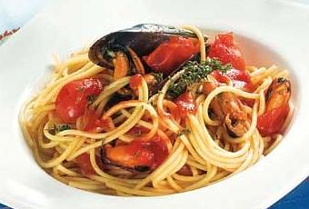 Unite le cozze, spruzzate con il vino, mescolate e cuocete ancora per un paio di minuti. Condite col sugo gli spaghetti lessati, suddivideteli in 4 cartocci di carta da forno e cuocetela a 200° per un paio di minuti. Servite direttamente nei cartocci.