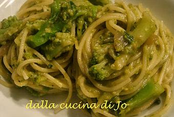 Lesso gli spaghetti, li scolo e li condisco con i broccoli saltati e con il composto di uova, mescolando per renderli cremosi, poi porto in tavola.