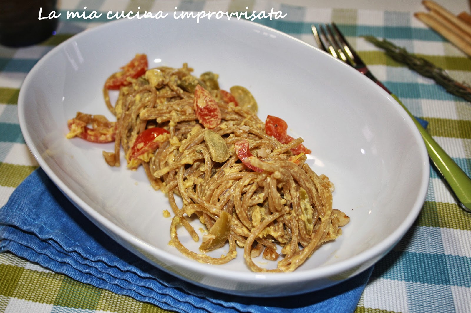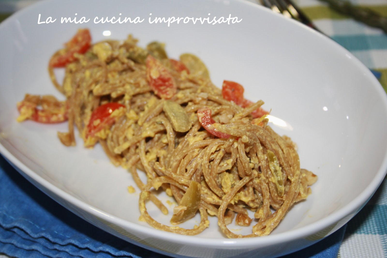 Ci sono quei giorni in cui non sai cosa fare a pranzo, cosa mangiare di diverso dagli altri giorni, vuoi qualcosa di nuovo, fresco e veloce... improvvisazione..... così sono nati i miei spaghetti mediterranei...