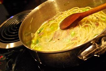 La tecnica di cottura che usiamo in questa ricetta, si definisce risottare, proprio perché la pasta viene cotta come se fosse un risotto, rilasciando più amido rispetto al normale.