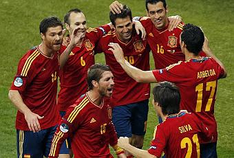 Troppa Spagna per l’Italia nella prima frazione. Le Furie Rosse hanno subito preso il pallino del gioco costringendo gli azzurri nella propria metà campo. I Campioni del Mondo hanno sbloccato il risultato al 14° con David Silva: il giocatore del Manchester City, ha finalizzato con un gran colpo di testa in corsa, un cross dalla linea di fondo di Fabregas, che ha superato Chiellini. Reazione azzurra affidata a Cassano e Montolivo con due conclusioni dalla distanza che hanno trovato attento Casillas. Al 41° è arrivato il raddoppio di Jordi Alba che si è inserito tra Barzagli e Bonucci dopo un assist di Fabregas beffando Buffon in uscita.