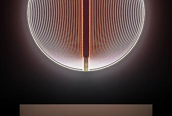 Specifiche tecniche: realizzata con dei mini led ed una base acrilica, questa lampada misura 55 x 55 x 7 cm. Il valore stimato all'asta è 1000 - 1500 euro.