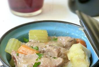 Procedimento:Tagliare la polpa di vitello a bocconi. Coprire il fondo di una casseruola con dell'olio evo e rosolare a fiamma vivace la carne da tutti i lati. Toglierla dalla casseruola e sistemarla in un piatto. Abbassare la fiamma e versare nell'olio la cipolla tritata che andremo a stufare a fiamma bassa. Rimettere nella casseruola la carne, aggiungere la foglia di alloro, versare 250 ml di acqua calda, coprire e cuocere per 40 minuti.Nel frattempo lavare le verdure e tagliare a rondelle, pelare le patate e tagliare a spicchi.Trascorsi i 40 minuti di cottura della carne, aggiungere le verdure, il pimento, salare, macinare il pepe e mescolare. Far cuocere per circa 30 minuti ancora o comunque finchè le verdure non siano cotte, controllando i liquidi; se serve aggiungere un po' di acqua calda. Cinque minuti prima di fine cottura emulsionare la senape con il succo del limone, versare, agitare la casseruola per far andare ovunque, controllare il sale, togliere la foglia di alloro e spargere il prezzemolo tritato.Portare a tavola accompagnato da un'insalata a foglia verde oppure ora che fa caldo da una horiatiki.Per 2 – 3 persone.