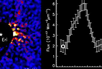 Ciò che rende 51 Eridani b davvero affine ai pianeti di casa nostra è invece la composizione dell’atmosfera. In particolare, è la quantità di metano misurata, grazie alle osservazioni in infrarosso, nello spettro d’emissione termica (vedi immagine sopra, riquadro a destra) del pianeta ad aver catturato l’attenzione degli astronomi. Mai si era vista prima una firma così intensa di questa molecola nell’atmosfera d’un esopianeta. Ed è un’abbondanza tutt’altro che scontata. «Nelle fredde atmosfere dei pianeti giganti del nostro Sistema solare, il carbonio si trova sotto forma di metano, a differenza di quanto accade per la maggior parte dei pianeti extrasolari, dove il carbonio è stato rilevato perlopiù sotto forma di monossido di carbonio», osserva infatti uno fra i coautori dell’articolo, Mark Marley, dell’Ames Research Center della NASA. «Avendo anch’esso un’atmosfera ricca di metano, 51 Eridani b è dunque sulla buona strada per diventare un cugino del nostro Giove».