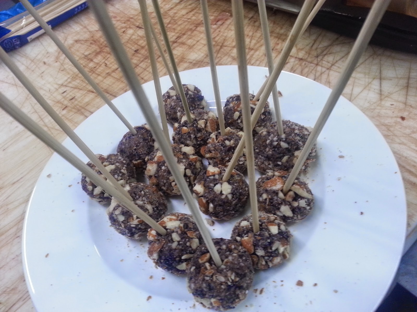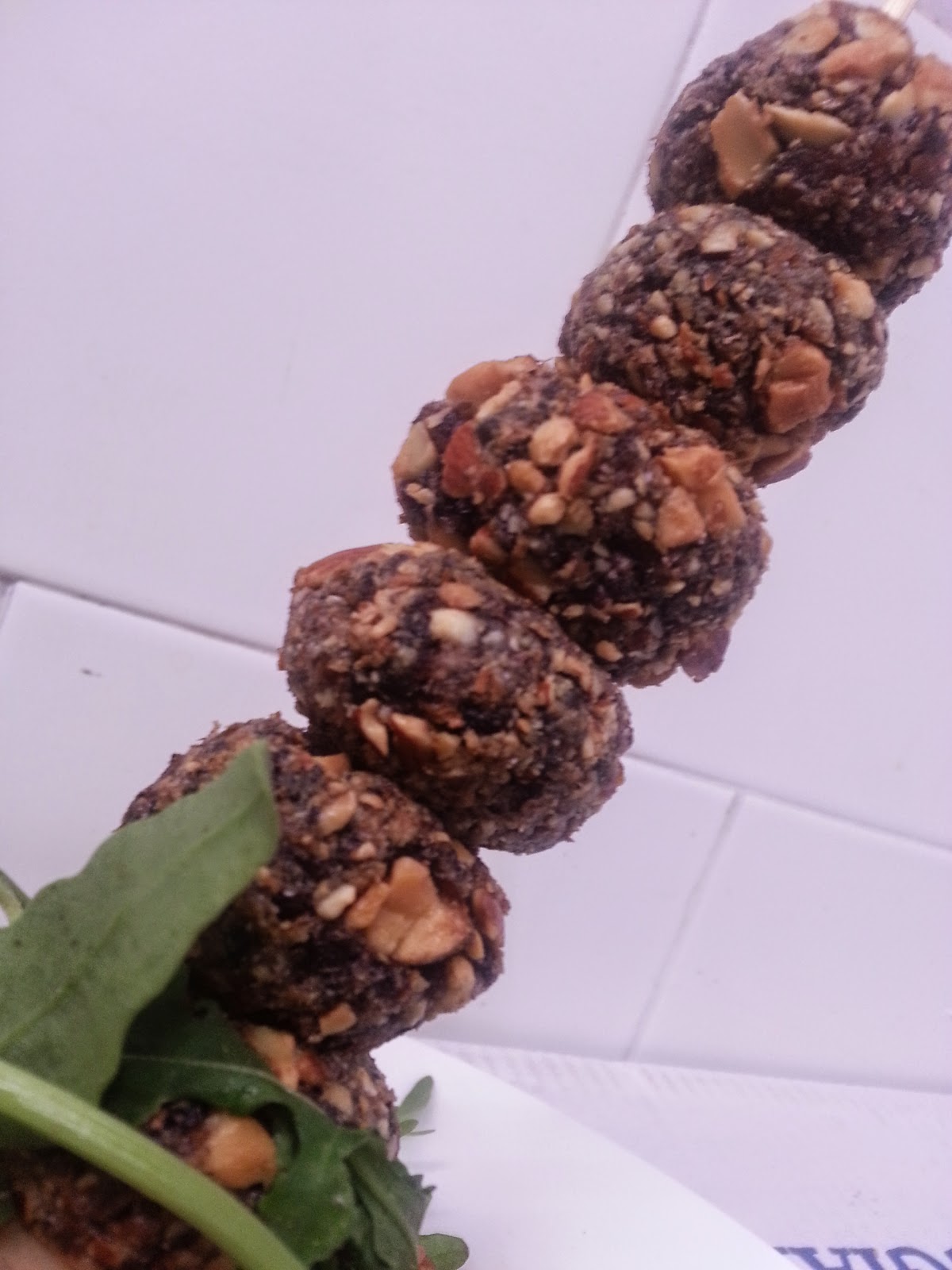 Spiedo di polpettine di riso Venere con crosticina di mandorle salate