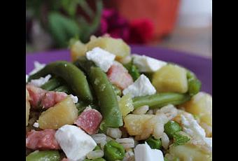 Il mese di maggio è un mese di passaggio, pieno di cose da fare, di appuntamenti, di scadenze, di decisioni da prendere. Questo tutto a scapito della cucina che viene in parte messa da parte, ma dato che di fame proprio non si può morire e i piatti pronti mai e poi mai, una bella insalata come piatto unico è l'ultima spiaggia.