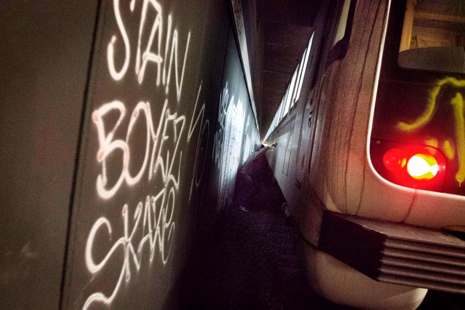 STAIN su treni della Metro B appena ripellicolati. Si legge la sigla NR.Schermate dall'album su Flickr Steinr18 http://www.flickr.com/photos/steinorulez