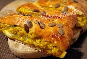 Sovrapporre le estremità della pasta brisè alla parte centrale chiudendo per bene tutti i bordi. Ribaltarlo, delicatamente, in modo da mantenere la chiusura verso il basso, sistemarlo su un foglio di carta forno e spennellarlo con un mix di uovo e latte, aggiungere a piacere i semi di zucca .