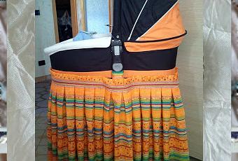 Ed ecco il perfetto lavoro fatto dagli operai in sordina della girandola. Ovvero mio marito e mia mamma. Prima che nascesse Filippo abbiamo cercato ovunque una struttura che reggesse la navetta della carrozzina. Niente che potesse andar bene per questo modello, così il mio piccolo falegname personale ha costruito l'armatura tutto da solo. Due assi di legno sagomate una subito sotto la navetta e una ai piedi della struttura, così da poter mettere una cesta posta oggetti e con quattro gambe in legno ha realizzato la struttura . . . completa di ruotine!E per rifinirla, la "nonna" ha cucito la tendina super colorata, attaccata alla struttura col velcro. Giusto per renderla un po' più elegante. E' rifinita proprio bene. A Nicola piace! tira fuori tutto quello che metto sotto e ci gioca a cucù!