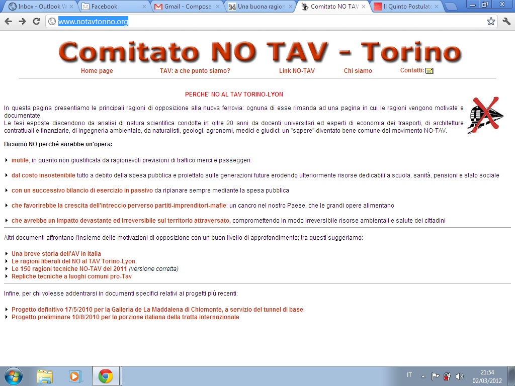 Gli altri motivi no tav? Se ne arrivano ad elencare persino 150 ma quelli più gettonati sono 1) la paura di infiltrazioni mafiose e 2) il fatto che la tav provocherebbe danni gravi all'ambiente circostante. 1) Sicuramente è un problema reale con questa filosofia non faremo mai niente; 2) Forse vero, ma allora le autostrade? E le linee ferroviarie già esistenti? Perchè non ci sono state rivolte anche per quelle?