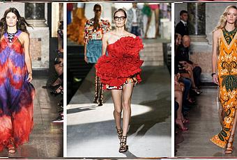 Partiamo dal rosso e da tutta la gamma degli arancio&co: si tratta di colori vitaminici (se credete alla cromoterapia queste tonalità vi daranno una sferzata di energia) che possono essere indossati in total look o anche mixati tra loro. Per non sbagliare, anziché puntare sul color block, meglio virare su un abito che contiene entrambe le tonalità, magari sfumato, in pieno mood Seventies come si usa quest’anno.