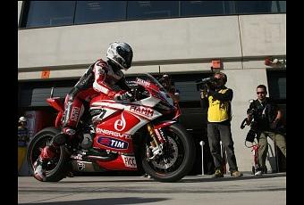 Gara 1 – Con un cielo completamente azzurro e un caldo sole, Carlos e’ partito bene dalla quarta fila, transitando decimo dopo il primo giro. Ayrton, tredicesimo in griglia, ha guardagnato un paio di posizioni nei primi giri prima di passare Neukirchner al settimo passaggio per prendere l’undicesima posizione. Tenendo un buon passo, Checa e’ riuscito a migliorare costantemente la sua posizione e al settimo giro era settimo. Nella seconda parte della gara entrambi i portacolori Ducati Alstare hanno girato praticamente da soli, con un distacco di qualche secondo dai piloti che li inseguivano e da quelli che li precedevano concludendo la gara in settima (Carlos) e decima (Ayrton) posizione.