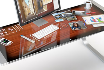 MacLife immagina una scrivania con una superficie di visualizzazione completamente sensibile al tocco, progettata per integrarsi con i vostri computer e dispositivi mobili: