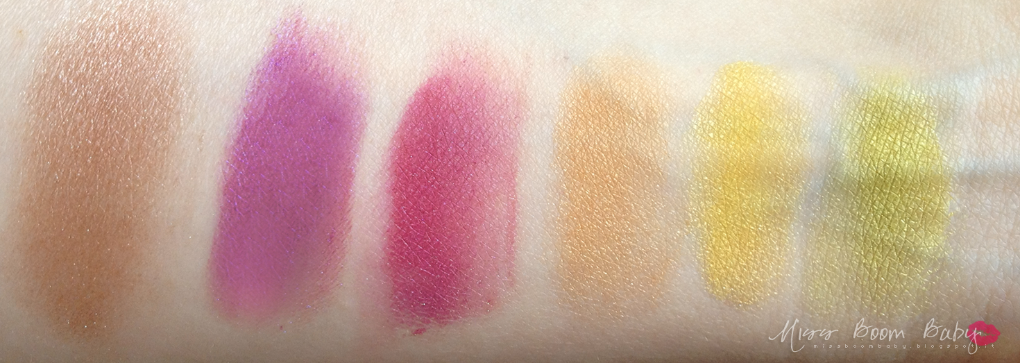 La resa sugli occhi è molto buona, i colori sono modulabili, quindi anche i più brillanti possono essere resi meno appariscenti, la durata anche è molto buona e non ho avuto problemi di pieghette tranne che con Mysticism ma con queste temperature sfido qualunque ombretto a reggere senza primer! A me sono piaciuti davvero molto e credo che farò un ordine perchè alcuni colori sembrano davvero interessanti!