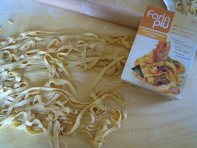 INGREDIENTI PER 4 PERSONE: PER LA PASTA: 300 gr di farina per pasta e gnocchi dei Molini Rosignoli 100 gr di farina di ceci precotta Melandri Gaudenzio 2 uova 60 ml circa di acqua