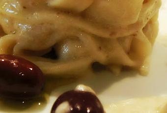 tagliatelle o trenettetipica pasta ligure generalmente impiegata per la classica ricetta "trenette al pesto" patè di noci ed olive nere taggiasche(È così chiamata perché arrivò a Taggia, qui portata dai monaci di San Colombano provenienti dall'isola monastero di Lerino. Gli innesti di oliva taggiasca furono nei secoli diffusi in tutta Italia, sebbene la coltivazione maggiore sia sempre rimasta nella provincia di Imperia, e oggi risulta essere una delle più rinomate olive per produzione di olio extravergine e una delle migliori olive da mensa, poiché il frutto, nonostante le ridotte dimensioni, è molto gustoso.Si utilizza in gastronomia in molti dei piatti liguri a base sia di carne sia di pesce, in particolare gli umidi. Tra questi i più conosciuti sono: coniglio in umido alla ligure (o alla sanremese), agnello alle olive, roast-beef alla salsa di olive, baccalà alla levantina, cappunadda, olive in salamoia.)