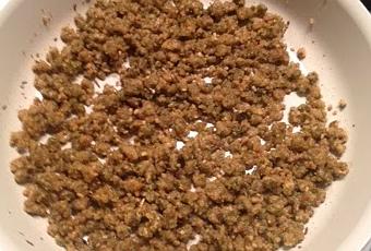 Cuocere la pasta, una volta scolata farla saltare brevemente insieme ai funghi. A fuoco spento aggiungere il trito tostato fatto con il pane e le nocciole, una macinata di pepe e servire.