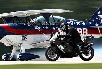 David Werth dopo aver visto il mio link tramite un post pubblicato da Chris Hunter di BikeExif mi ha voluto mandare queste foto . Lui e suo fratello si divertono a fare questi spettacoli , dove lui guida la moto e suo fratello va in volo rovescio cosi che David possa prende il timone di coda con le mani ......i ragazzi si divertono con poco :-)))