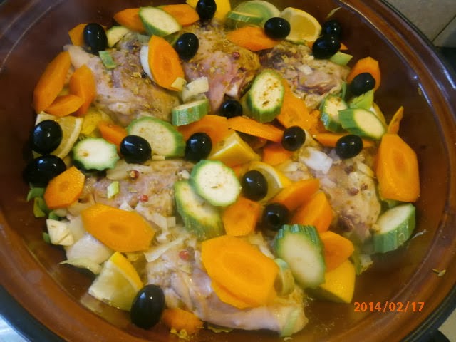 La cena di ieri ho preparato una bella tajine di pollo al limone, spezie e verdure, accompagnato di un couscous semplice, aromatizzato al brodo di pollo. Una cena buonissima.
