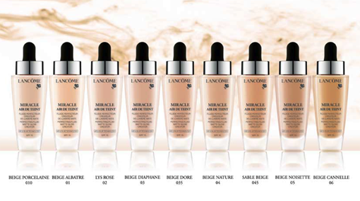Questo fondotinta è senza dubbio uno dei best sellers della maison, oggi è stato potenziato e rinnovato, aggiungendo ancora più colori a quelli già presenti, e, cosa ancora più importante, è stato ancora migliorato il sistema Aura-Inside™, il segreto all'interno della formula di questo prodotto che consente di creare quella luce così particolare e caratteristica di questo fondotinta.Teint Miracle è il fondotinta per la donna che si trucca ogni giorno, per quella donna che ama avere una base perfetta e che potrebbe fare a meno di tutti i prodotti, meno che di questo. Ma ad esempio non tutte amano indossare il fondotinta, anche se è una parte importante del trucco sono sempre di più le donne che cercano texture impalpabili e una leggerezza estrema, pari a quella del tocco di una piuma, mantenendo una sensazione di freschezza e di massimo comfort, per un effetto pelle nuda quasi reale.Da quest'ultima esigenza nasce Miracle Air de Teint, il fondotinta liquido leggerissimo e impalpabile, pensato per le donne che usano sì il prodotto, ma che preferiscono metterne poco e non pensarci più, avendo però comunque un viso uniforme e un incarnato naturale.Il prodotto è leggero come l'aria e sul viso si trasforma quasi in una polvere setosa, l'effetto è opaco ma naturale, la luminosità è data dal mix di pigmenti ma l'effetto è più sottile percettibile ma non visibile.