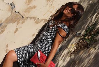 Un tubino stampa classica Vichy in Black & White per me , accompagnato da una nota di colore .... Rosso !!!