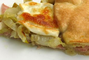 Pré-aqueça o forno a 180 °. Enxague bem a endívias, corte-a em fatias finas, frite-a num pouco de azeite de oliva extra virgem, tempere com sal a gosto e deixe arrefecer. Ponha a massa folhada numa assadeira redonda, mantendo o seu papel vegetal. Coloque o fiambre sobre a massa e a endívias e polvilhe com pimenta a gosto. Feche as bordas da massa e decore com fatias de búfala. Coza durante de 20 minutos.