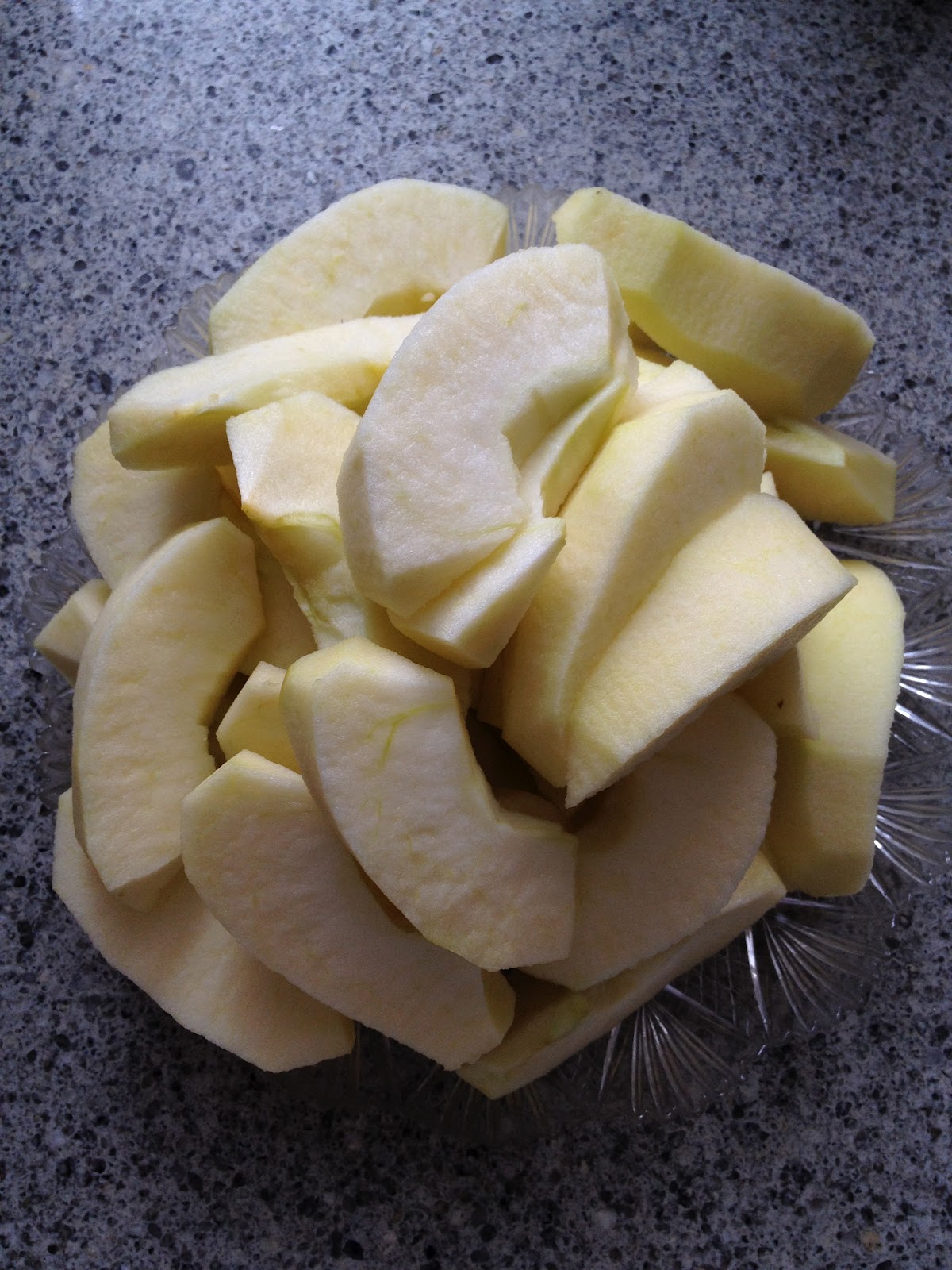 Inserire metà delle mele, cospargere ancora di zucchero ed aggiungere il resto delle mele