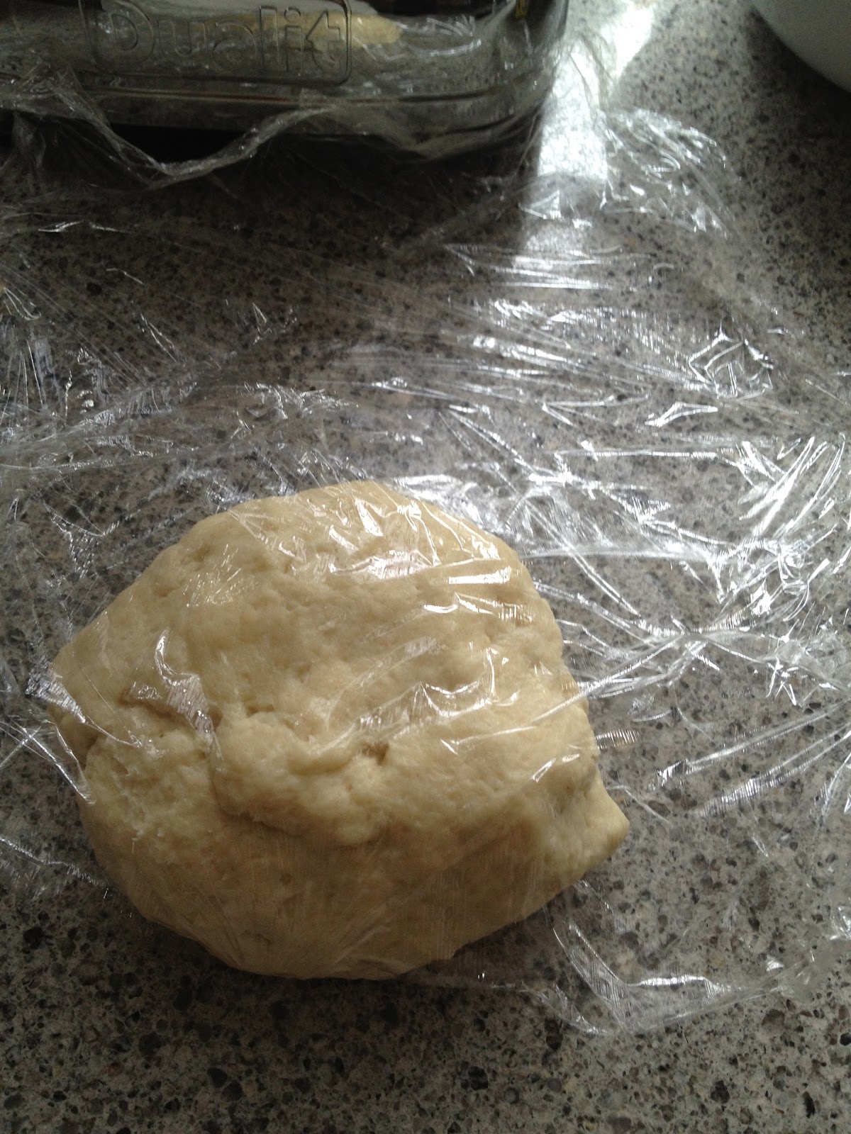 Impastare gli ingredienti, farne una palla, avvolgerla in una pellicola trasparente e farla riposare in frigorifero per 40 minuti.