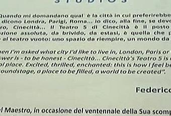 “Quando mi domandano qual è la città in cui preferirebbe abitare e mi dicono Londra, Parigi, Roma… io dico, alla fine, se devo essere sincero, Cinecittà… Il Teatro 5 di Cinecittà è il posto ideale. L’emozione assoluta, da brivido, da estasi, è quella che provo di fronte al teatro vuoto: uno spazio da riempire, un mondo da creare.”