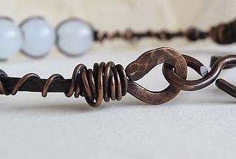Il particolare nella foto mostra la chiusura a gancio completamente fatta a mano, l'effetto martellato e il colore caldo che sono riuscita ad ottenere.