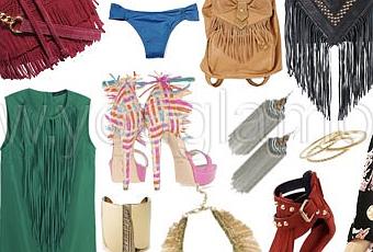La tendenza moda PE 2014 vede il ritorno degli anni ’90 e degli anni ’70. Tra i capi must have di questa stagione c’è un elemento comune: le frange. Le frange possono essere utilizzate come decoro su t-shirt, vestiti, giacche, costumi da bagno, bluse e persino su scarpe e borse. Per non bastare il trend delle frange farà capolino anche su collane, bracciali e orecchini.