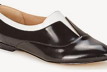 Adoro questa ballerina tipo mocassino, una tendenza rielaborata con la punta elegante. Colorblock , bianco e nero, che risalta un look da garcon,