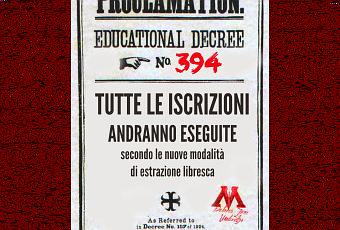 REGOLE:Ci siamo. La Umbridge ha colpito ancora con uno dei suoi assurdi decreti didattici! Per evitare il sovraffollamento delle scuole di magia ha escogitato un nuovo sistema di iscrizione assolutamente casuale, in cui ogni studente dovrà basarsi sulle risposte di uno strano questionario per scoprire come e dove sarà nel nuovo anno scolastico. Infatti insieme alla solita lettera d’ammissione la Umbrige ha allegato queste istruzioni: