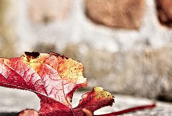 Potrei raccontare mille storie parlando di questa foglia caduta. In realtà non si tratta di una foglia morta, ma quasi. La poverina era malconcia e prossima all’incontro con l’asfalto: ho deciso, con grande spirito di sacrificio e di amore per la natura, di staccarla delicatamente dalla pianta madre, posarla sul muretto vicino e fotografarla a tutta apertura per diminuire la profondità di campo. Sono stato velocissimo: 1/1250 di secondo, non ha sofferto; roba da ricchi. Per enfatizzare l’effetto shock ho scurito i bordi e saturato il giallo ed il rosso della foglia. Un’ultimo momento di gloria.