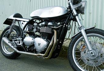 A modern Triumph Bonneville's engine on a timeless Norton Featherbed frame... Deliberately disharmonious lines between tank and seat... In one word, the essence of a handmade cafe racer, by Shaun Stocker of Down and Out Choppers, UK.
