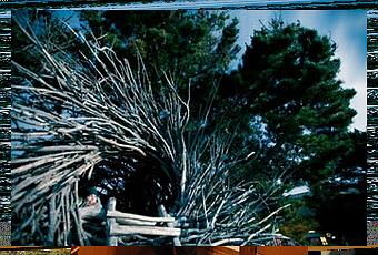Creato dall'artista Jayson Fann per Treebones Resort , utilizzando legname di scarto, raccolto dagli alberi intorno, questo nido può ospitare fino a otto persone ed è grande abbastanza per ospitare una tenda spiovente, in caso di pioggia.