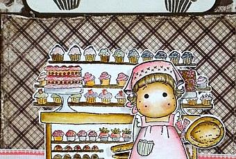 Since Michelle sent it to me I was looking forward to use this lovely stamp of this desk full of cakes, but since I had this recipes book on my mind already I had to wait to have time to make it! =) Isn't it perfect for a cake recipes??? The little Tilda look very nice on it, and afterwards I had fun putting all the stickles on all the cupecakes, and sweets!! Of course you can find this very sweet stamp at Michelle's shop!